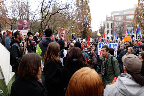 Protesters in the crowd were quick to link these attacks with the move to curtail the democratic rights of the occupiers. Despite a “no politics” mantra promulgated by elements within the Occupy movement, the possibility of occupying threatened libraries, public housing units and workplaces was being raised on the march by a section of community activists and workers.