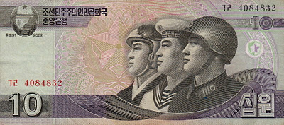Image: “The Korean people are too pure-blooded and therefore too virtuous, to survive in this evil world without a great parental leader.”The servicemen depicted on this Korean banknote share identical physical characteristics; great pride is taken in the homogenous & mono-ethnic features of the Korean race.