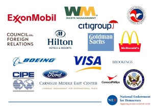 Image: Just some of the corporate-financier interests represented by the National Endowment for Democracy’s (NED) Board of Directors. NED’s mission statement of “supporting freedom around the world” is exposed as a ludicrous cover for what is obviously an organization dedicated to expanding the corporate-financier hegemony of its membership and sponsors – merely using the cover of “democracy promotion” to justify what is in fact global imperial conquest. (click on image to enlarge)