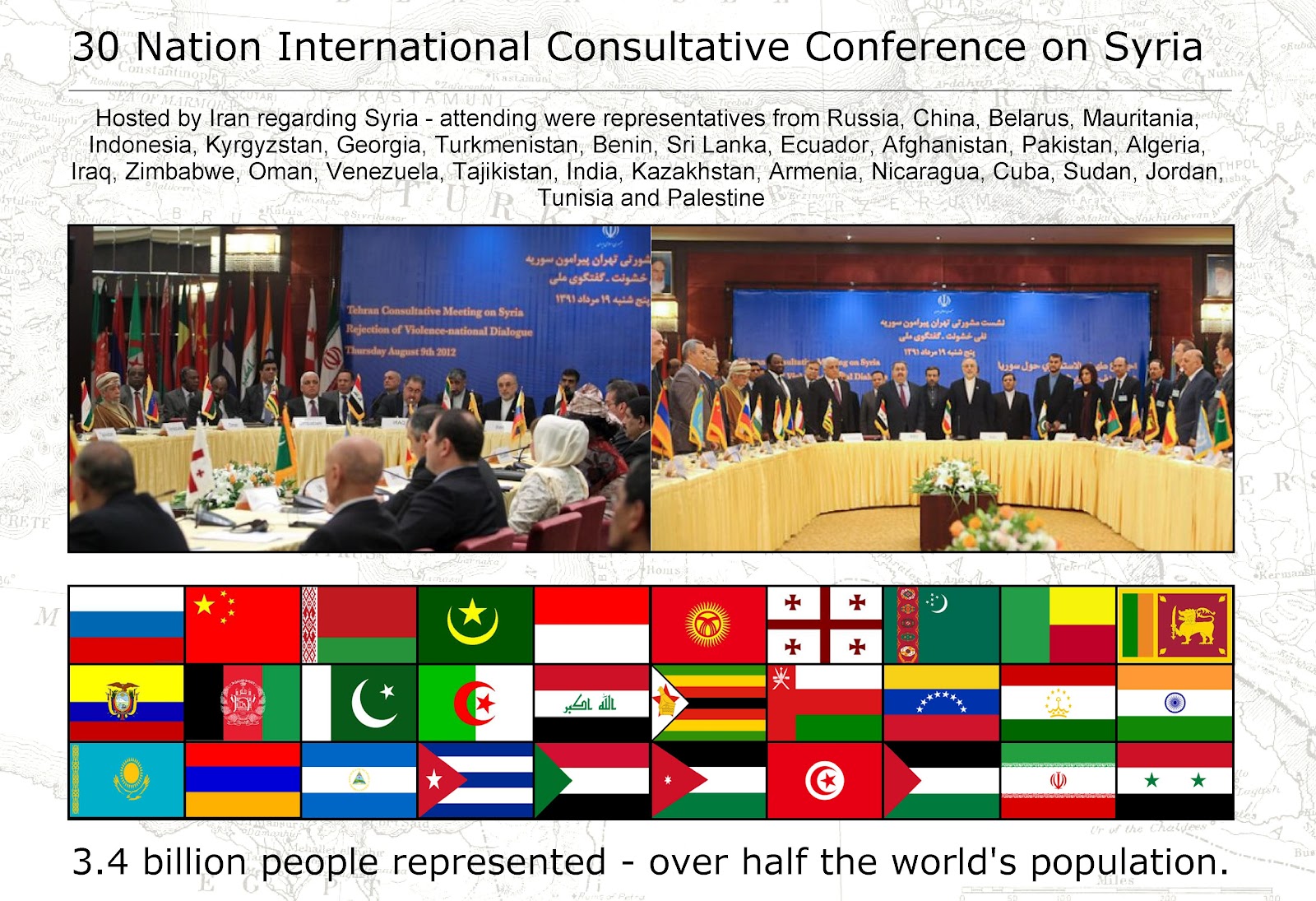 Image: An impressive counter to the so-called “Friends of Syria” confabs held by Wall Street and London corporate-financier interests in an attempt to sway global opinion toward a repeat of Libya’s destruction at NATO’s hands, the International Consultative Conference hosed by Iran seeks to end the flow of foreign arms into militant hands and resolve political differences through more civilized means.