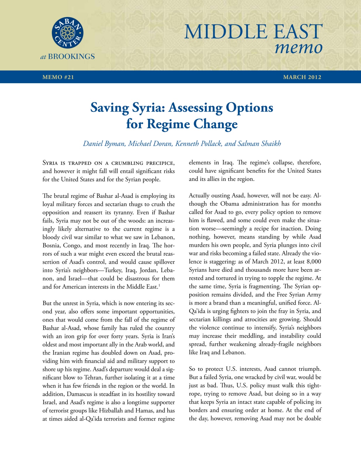 Image: The Brookings Institution, Middle East Memo #21 “Assessing Options for Regime Change (.pdf),” makes no secret that the humanitarian “responsibility to protect” is but a pretext for long-planned regime change.