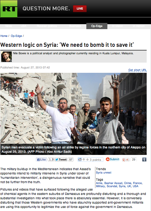 The military buildup in the Mediterranean indicates that Assad’s opponents intend to militarily intervene in Syria under cover of ‘humanitarian intervention’, a disingenuous narrative that could not be further from the truth. Pictures and videos that have surfaced following the alleged use of chemical agents in the eastern suburbs of Damascus are profoundly disturbing and a thorough and substantial investigation into what took place there is absolutely essential. However, it is conversely disturbing that those Western governments who have staunchly supported anti-government militants are using this opportunity to legitimize the use of force against the government in Damascus.