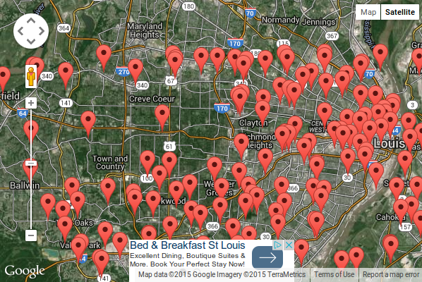 Now let us look at another map, this one noting cell tower placement in St. Louis. You will note Creve Coeur, Chesterfield and Town & Country are mysteriously almost “tower-free”. Town and Country is ranked 80th in the nation for highest per capita income (16). Not even shown is uber-rich Ladue. Hmmm….coincidence? I think not.