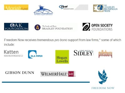 Image: Freedom Now’s corporate and foundation sponsors revealing that it, like so many others, is yet another Fortune 500 front carrying out the agenda of the monied elite under the guise of “humanitarian concerns.”