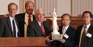 Images: Top – 2008’s “Democracy Awards” presented to representatives of Chen Guangcheng. Bottom – In late 2011, Egyptian and Tunisian proxies receive their awards for helping the West topple sovereign governments and install client regimes – Tunisia in particular now sports a NED-funded “activist leader” as president.